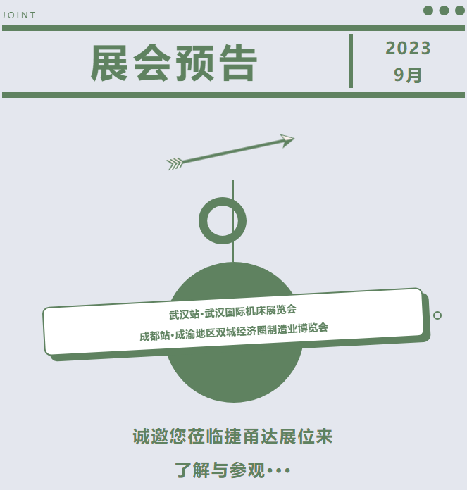 歡迎您到捷甬達(dá)展位來了解與參觀!JM2023第26屆濟(jì)南國際機(jī)床展覽會;CWIEME2023西部制博會;CCiME2023...